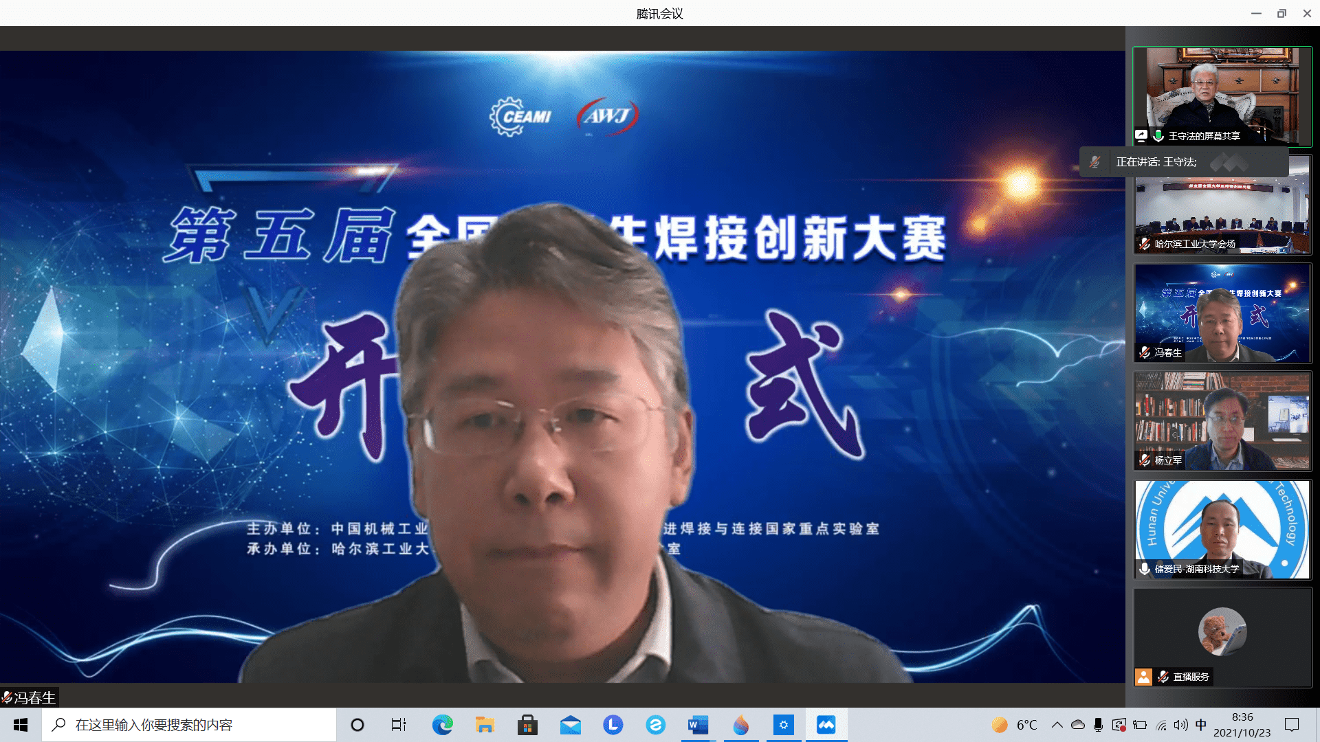 10月23日8:30分,赛事开幕式正式开始,由机械工业出版社高等教育分社社长冯春生主持,哈尔滨工业大学校长助理兼英才学院院长沈毅教授,中国机械工业教育协会理事长王守法教授,焊接学会副理事长、中国钢研科技集团公司副总经理、党委常委田志凌教授,先进焊接与连接国家重点实验室党支部书记林三宝教授,焊接学科教学分委员会主任委员,哈尔滨工业大学方洪渊教授及大赛组委会、天津大学杨立军教授出席并讲话。